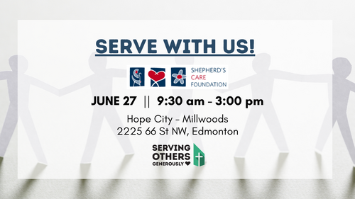 Join us as we partner with other Edmonton-area churches to raise money to support the good work that Shepherd's Care is doing to care for seniors in and around Edmonton and surrounding area. Click the link to learn more!