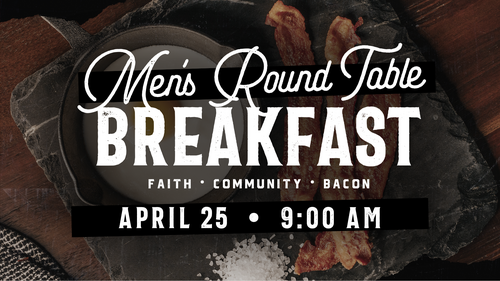 Men... Bacon... need we say more? All men are invited to register for the Men's Round Table Breakfast, taking place on Saturday, April 25, at 9:00 am. All men are welcome! Please register before April 22.