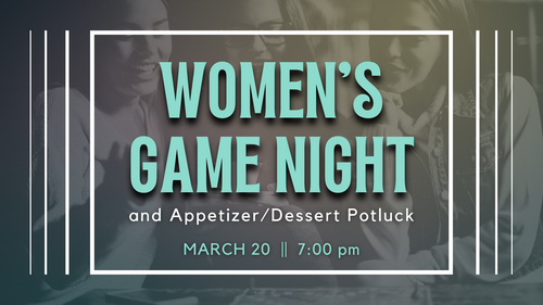 Join us for a Women's Only games night at Heartland. This is a great way to connect in community and enjoy some food and fellowship. This is a potluck event. Please bring an appetizer or dessert to share. If you have a fun game that you like to play, bring it along as well.